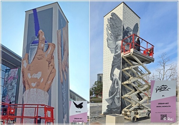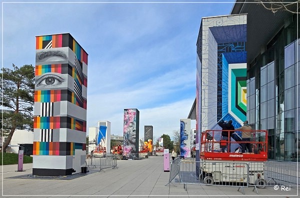 13 Monolithen, jeder von ihnen ist 8,50 Meter hoch, dienen als große Leinwände für die Künstler |